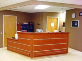 Located in Hazelton, Pennsylvania, this work was done in 2 phases, in 2 different buildings. The scope of work included removing existing ceiling and flooring and replacing with new, new cabinets were built and installed, painting, wallcovering, handrail, cove base were installed throughout the facility. New tile was installed in shower rooms.